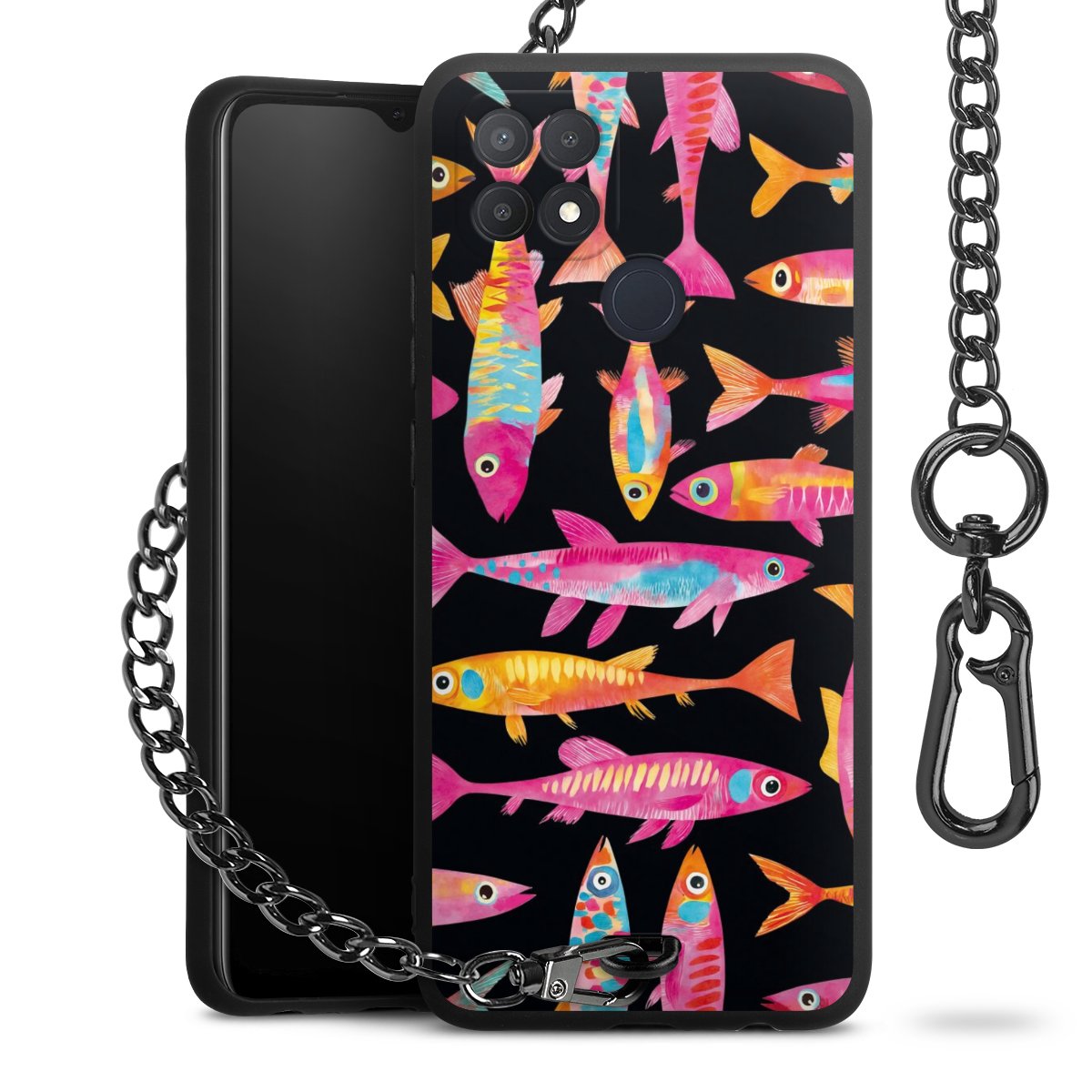 • Mattschwarze Handyhülle mit Metallkette