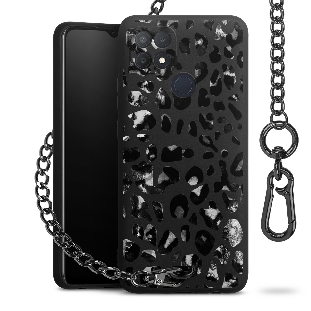 • Mattschwarze Handyhülle mit Metallkette