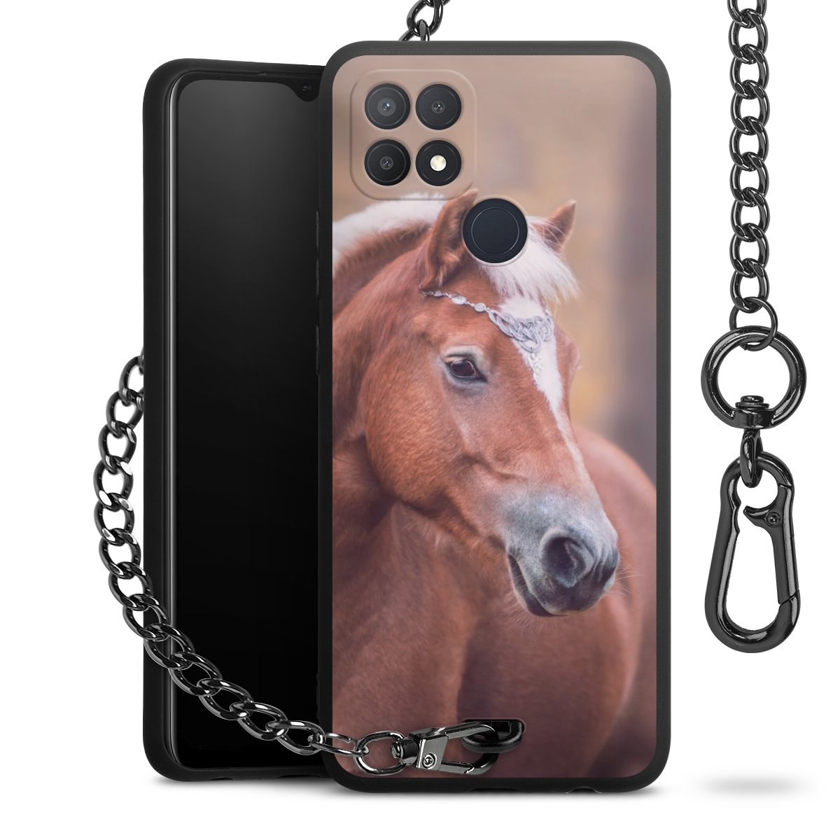 • Mattschwarze Handyhülle mit Metallkette