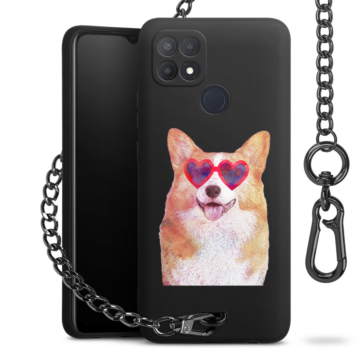 • Mattschwarze Handyhülle mit Metallkette