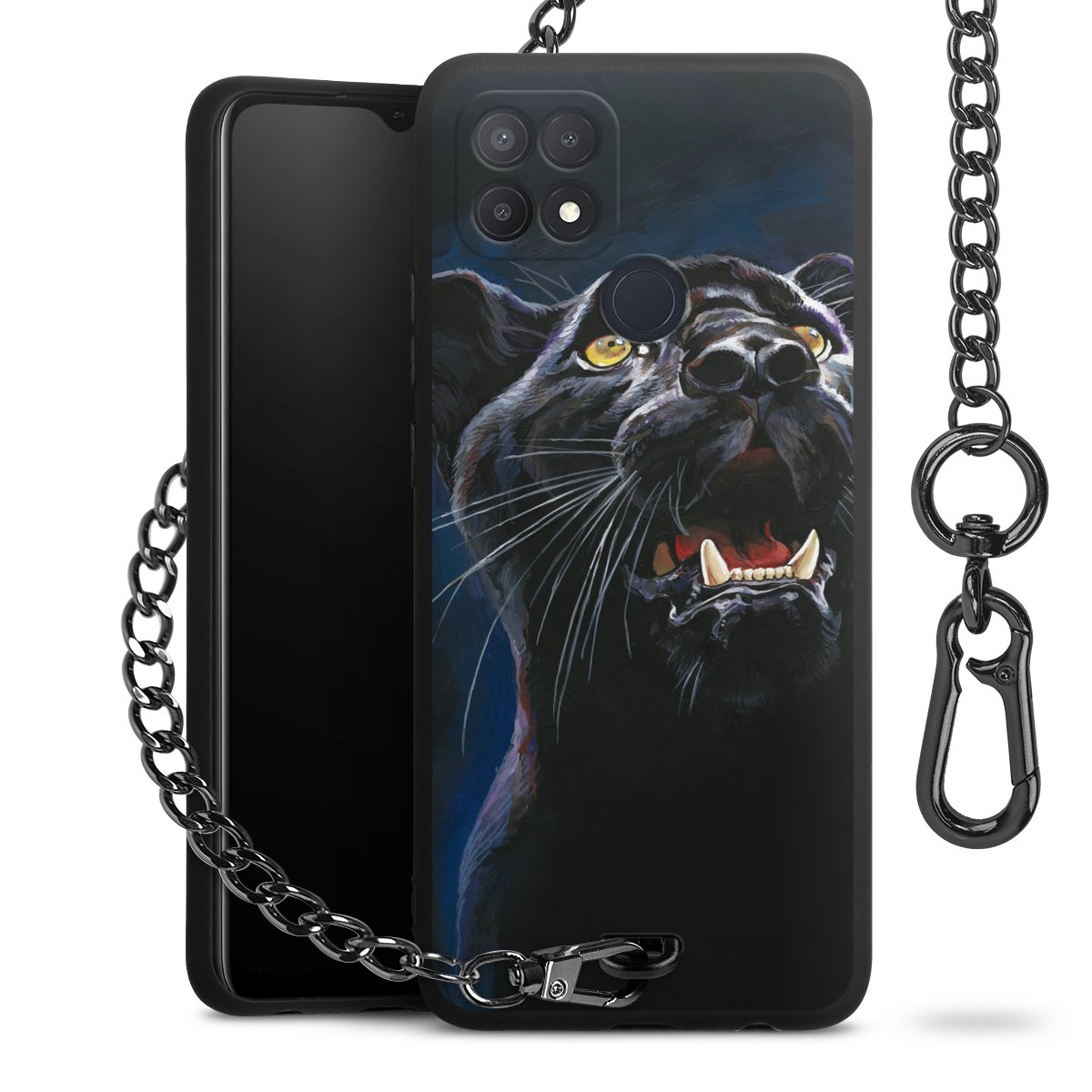 • Mattschwarze Handyhülle mit Metallkette