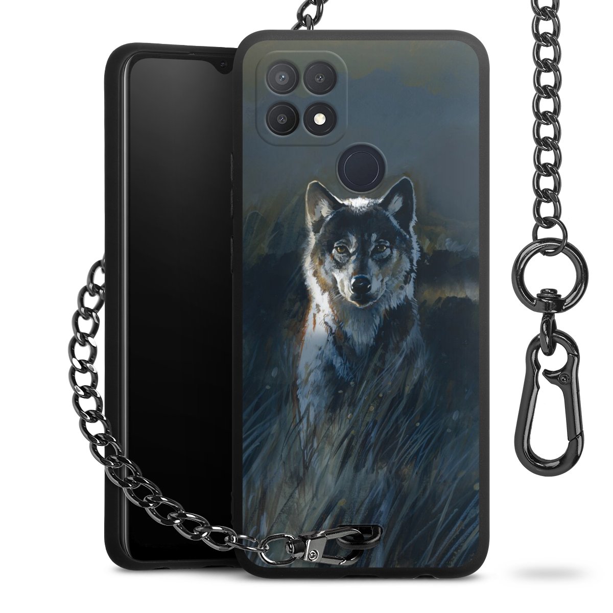 • Mattschwarze Handyhülle mit Metallkette