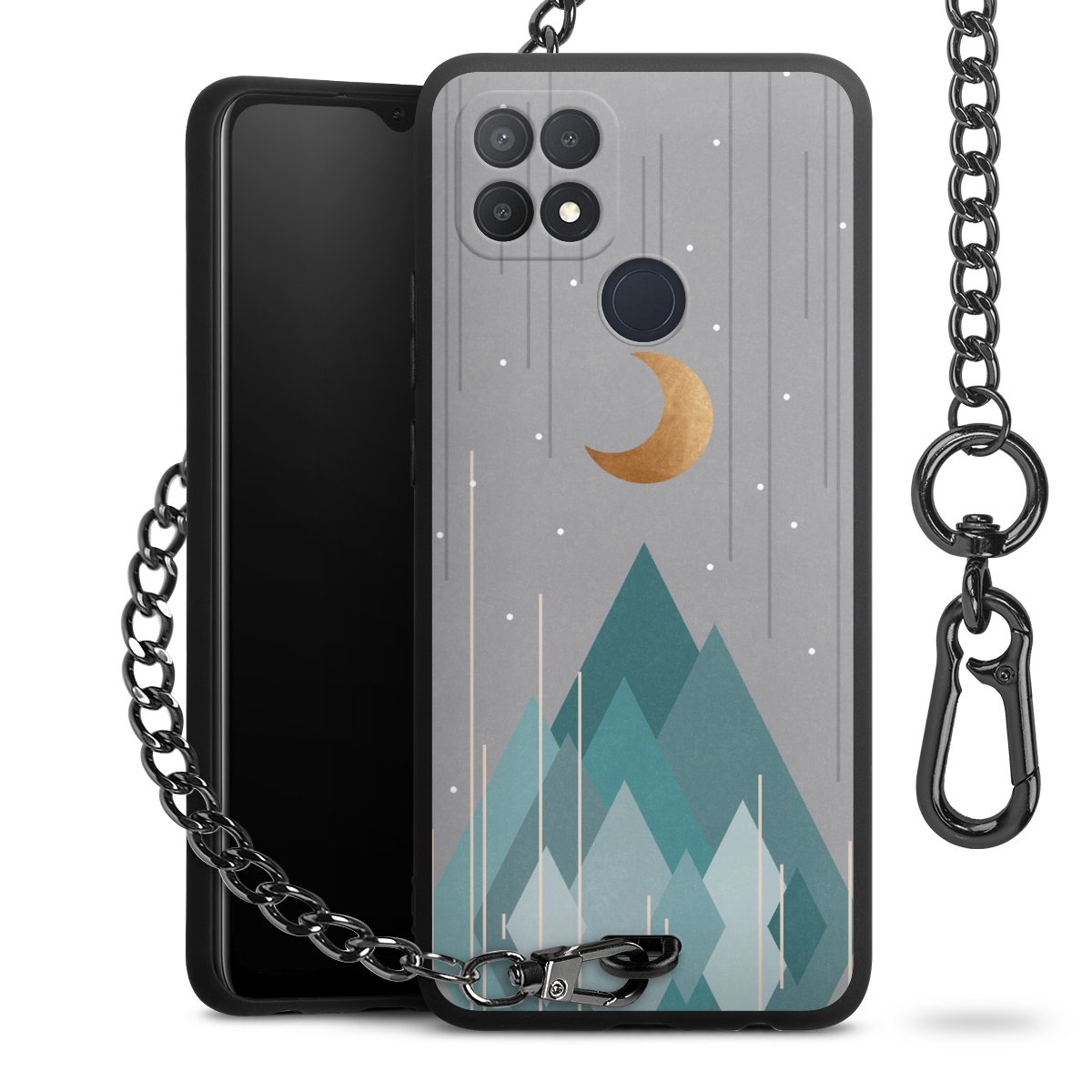 • Mattschwarze Handyhülle mit Metallkette