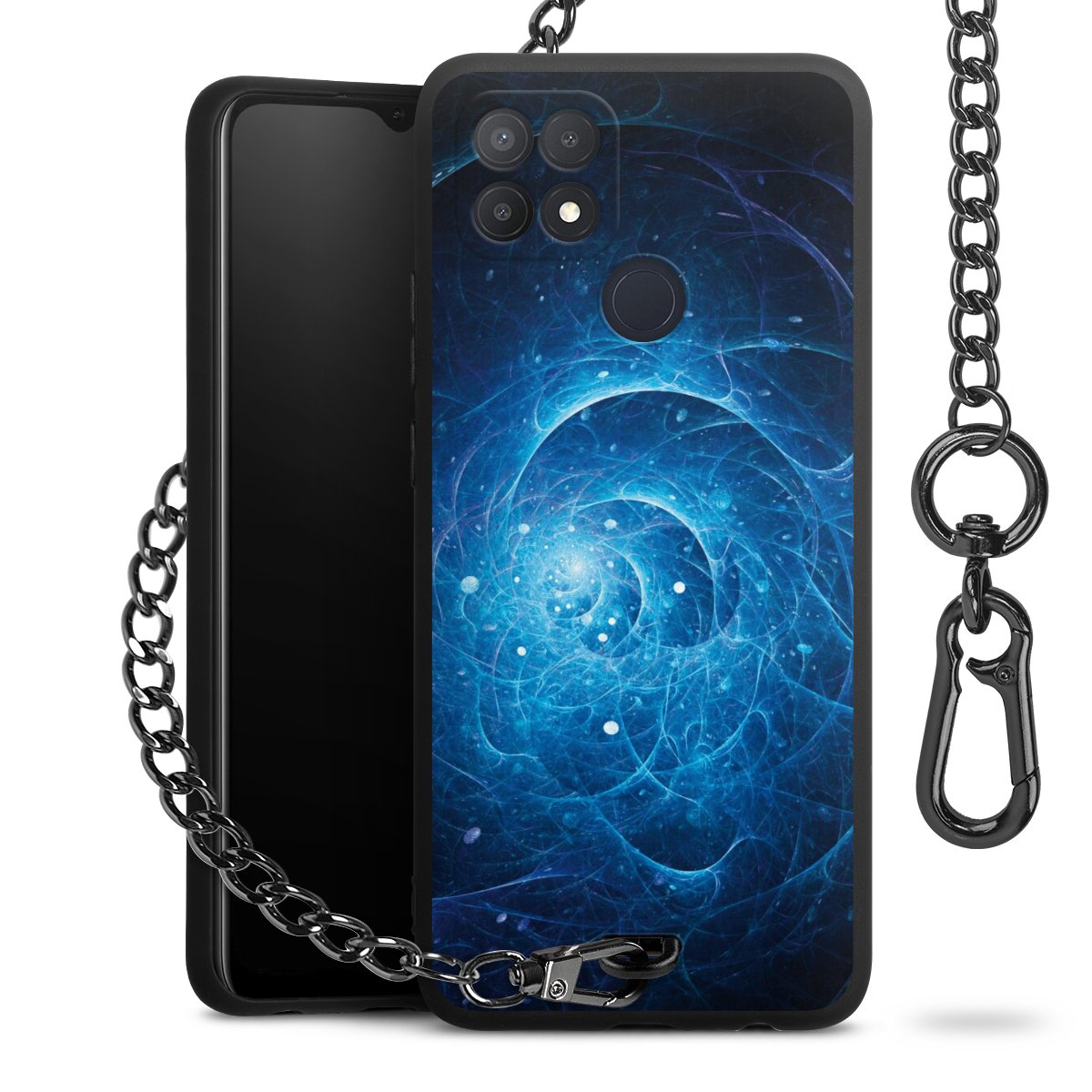 - Mattschwarze Handyhülle mit Metallkette