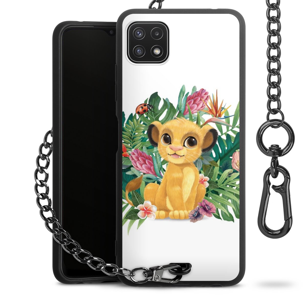 Die Handyhülle verfügt über eine mittig am unteren Rand platzierte Öse, an der die Metallkette stabil befestigt ist. Bestelle die Hülle einfach für Dein Smartphone-Modell, dann passt sie wie angegossen und Du brauchst sie bloß einmal anzudrücken. Handy in die Tasche, Karabiner an den Hosenbund – schon kann die Party starten.