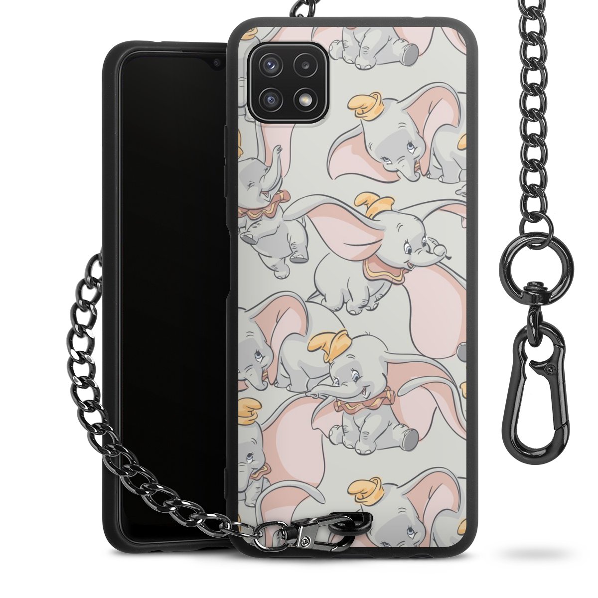 • Mattschwarze Handyhülle mit Metallkette