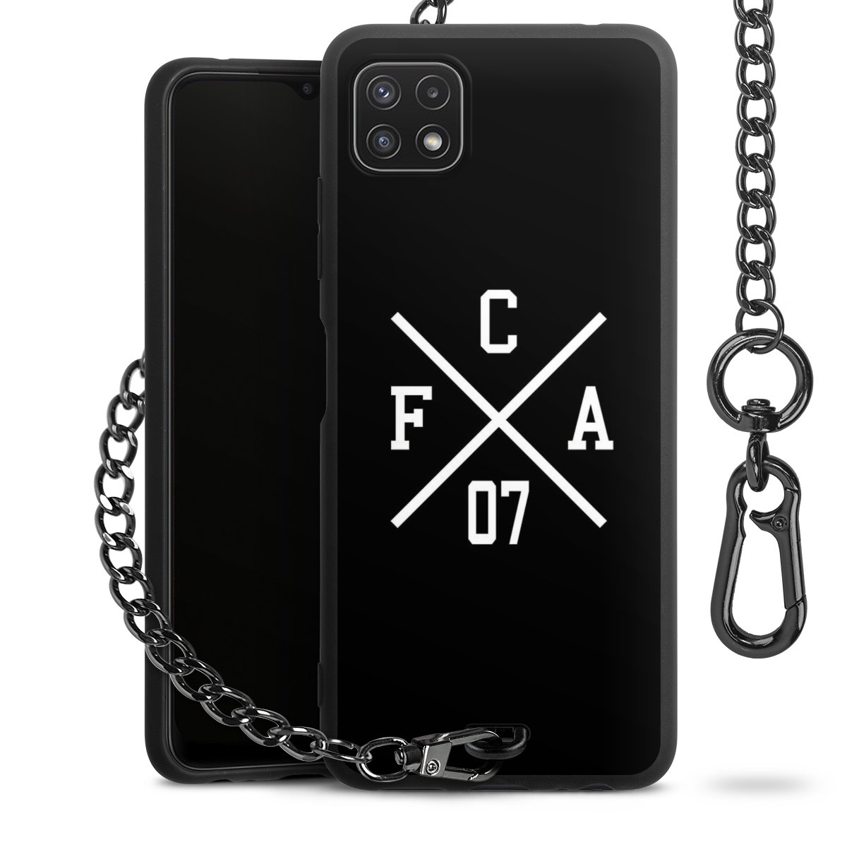 • Mattschwarze Handyhülle mit Metallkette