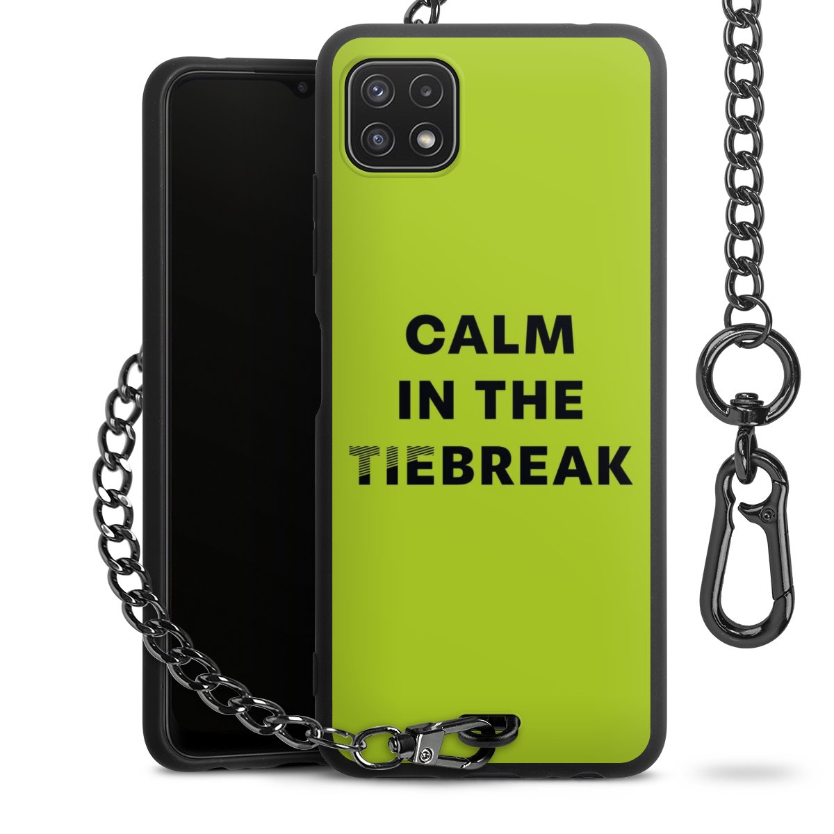 - Mattschwarze Handyhülle mit Metallkette