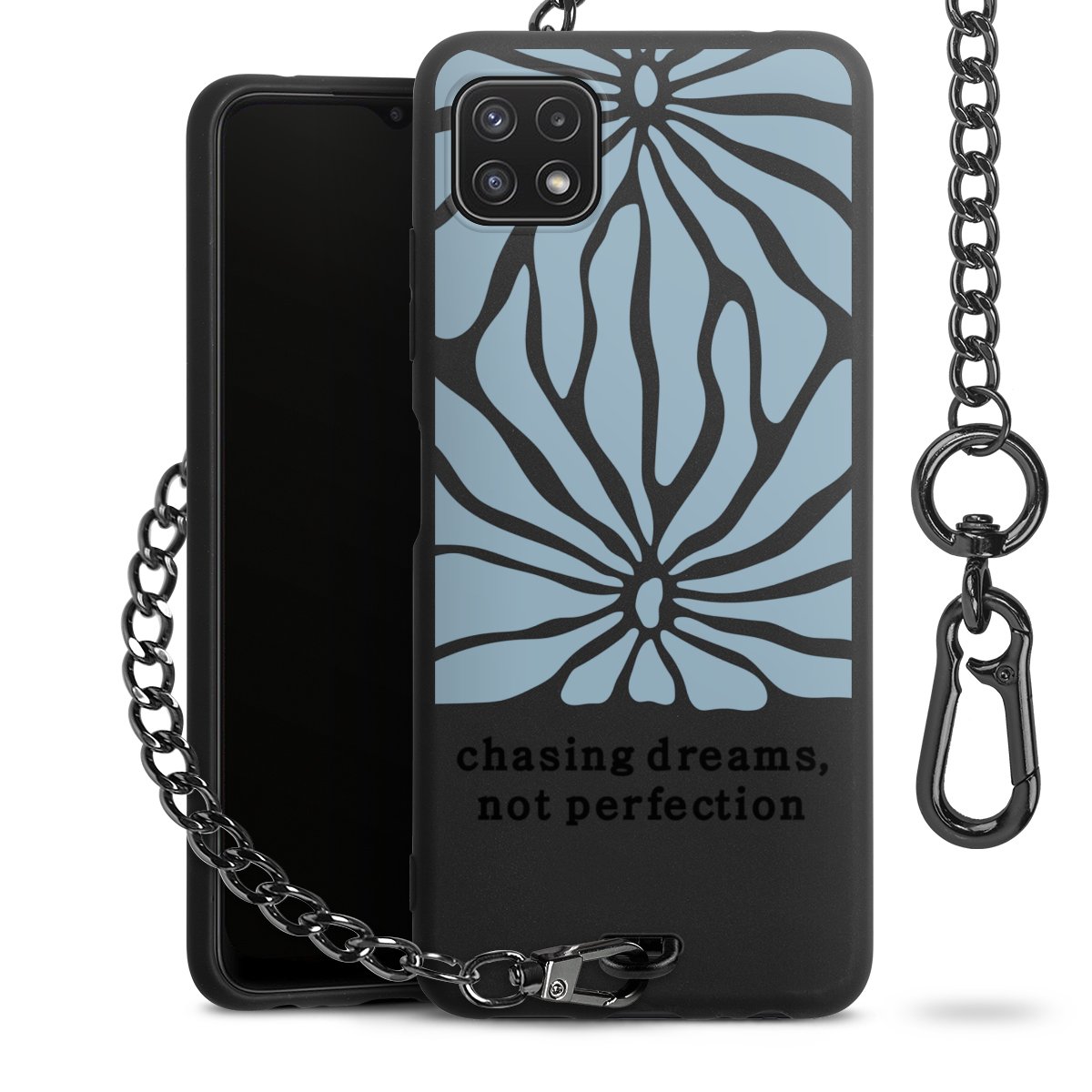 - Mattschwarze Handyhülle mit Metallkette