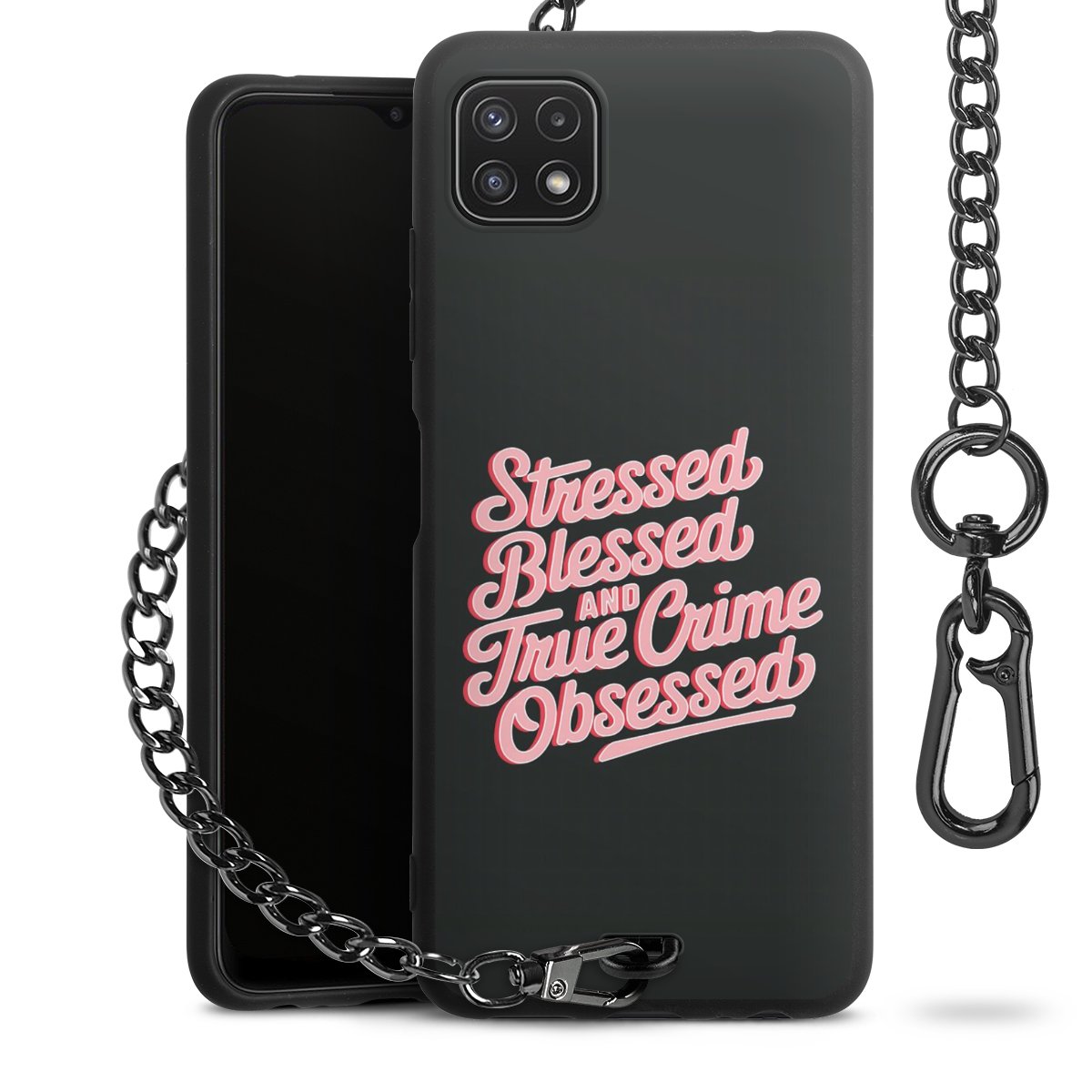 • Mattschwarze Handyhülle mit Metallkette