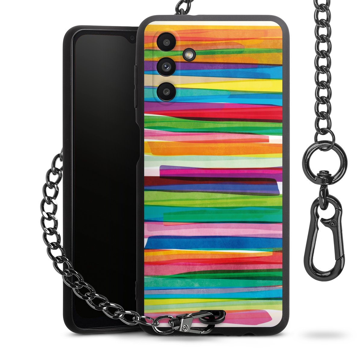 • Mattschwarze Handyhülle mit Metallkette