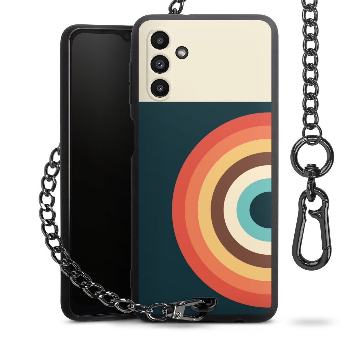 - Mattschwarze Handyhülle mit Metallkette