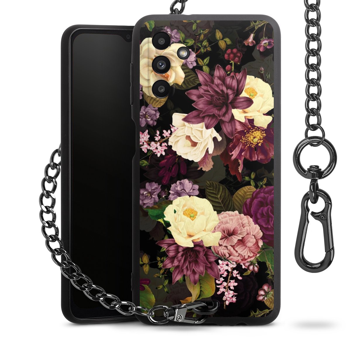 • Mattschwarze Handyhülle mit Metallkette