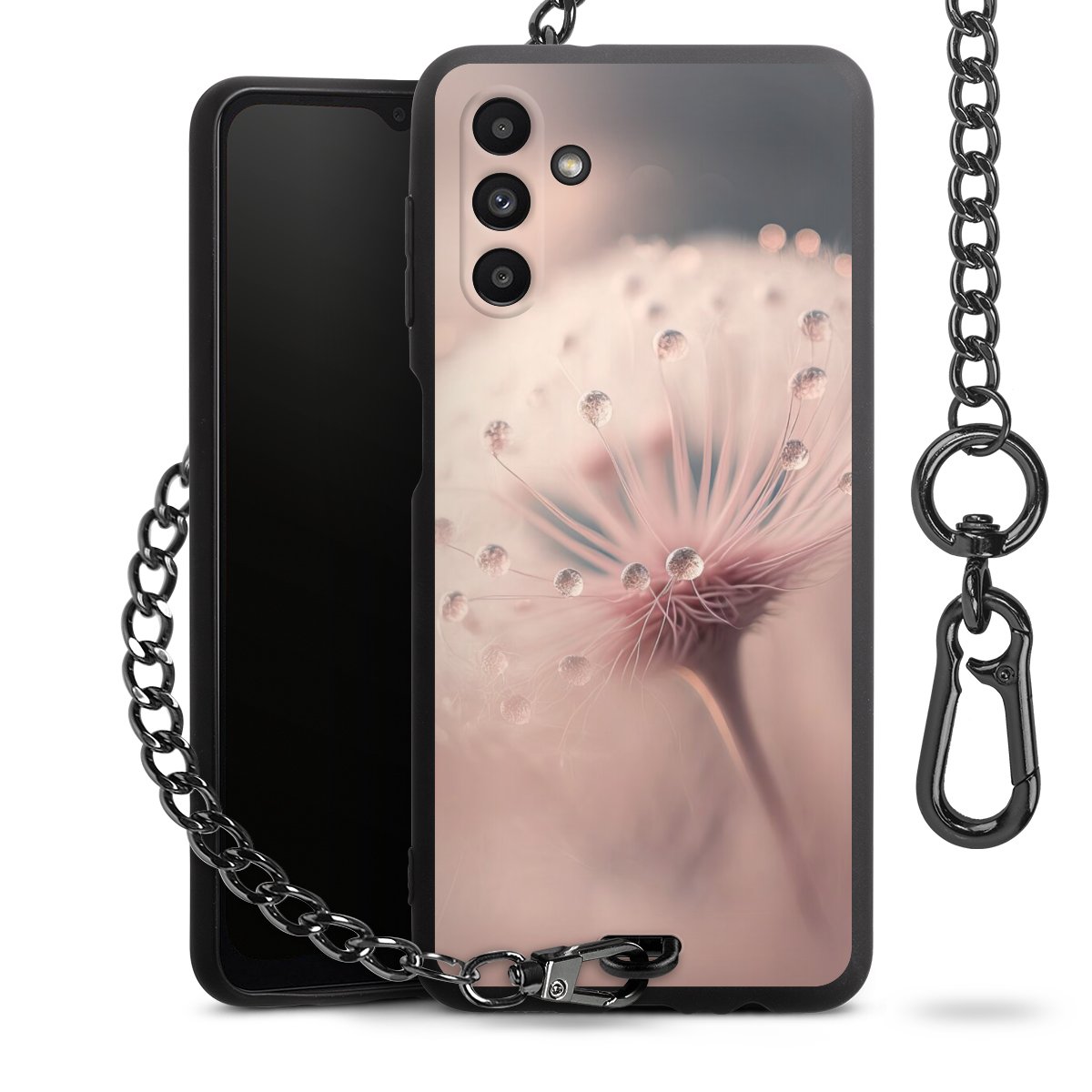• Mattschwarze Handyhülle mit Metallkette