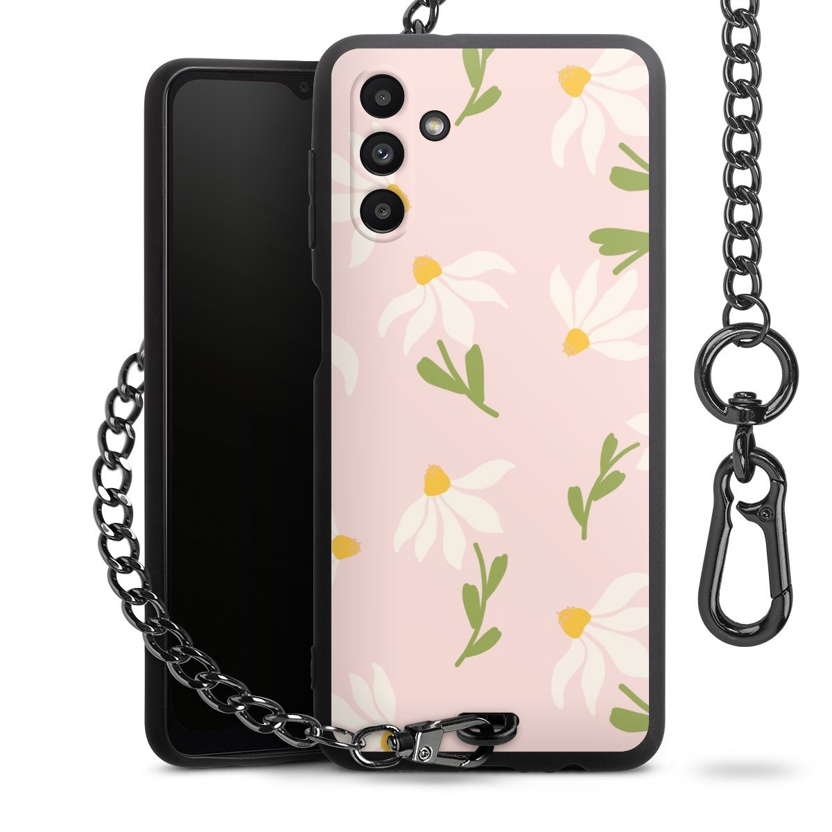 • Mattschwarze Handyhülle mit Metallkette