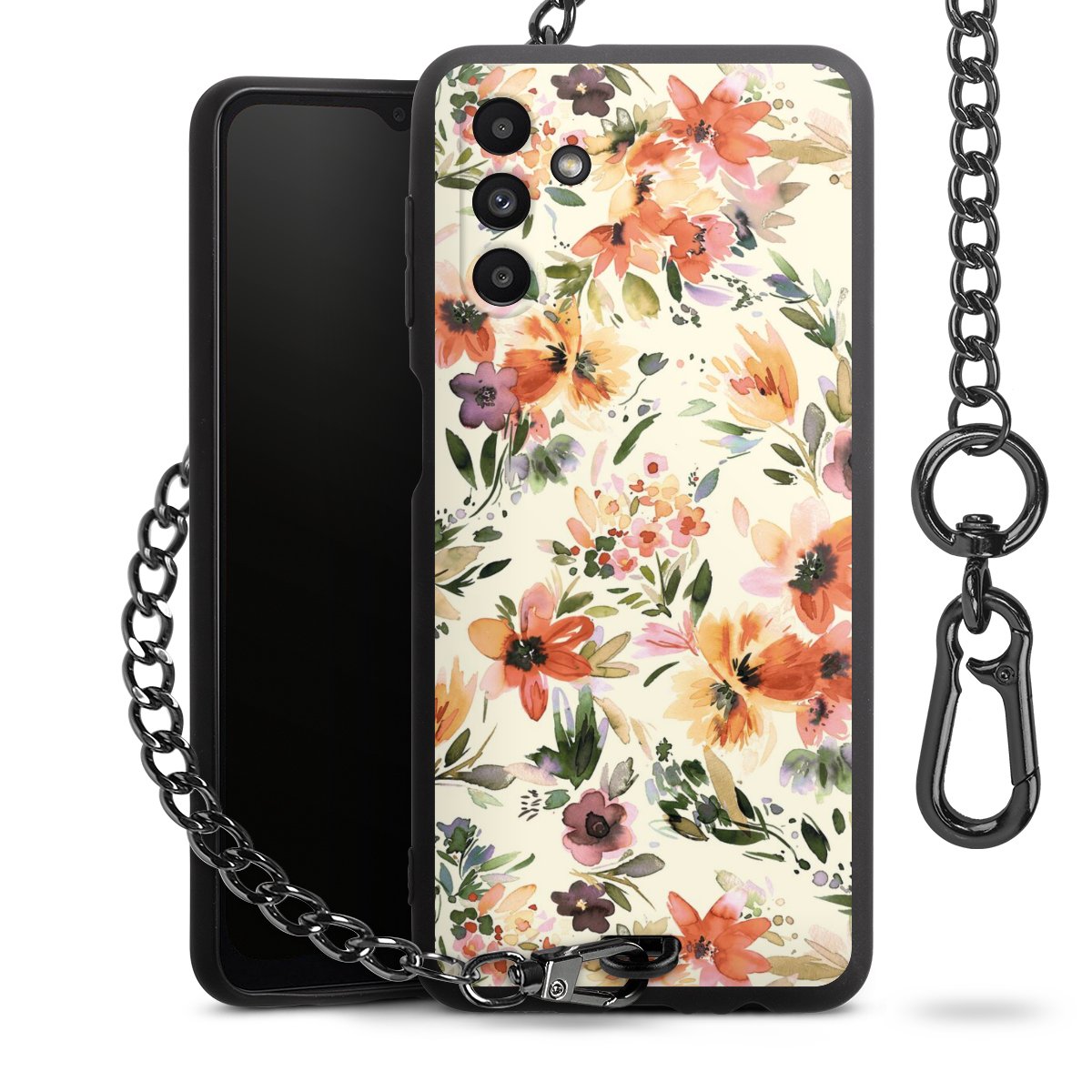 • Mattschwarze Handyhülle mit Metallkette