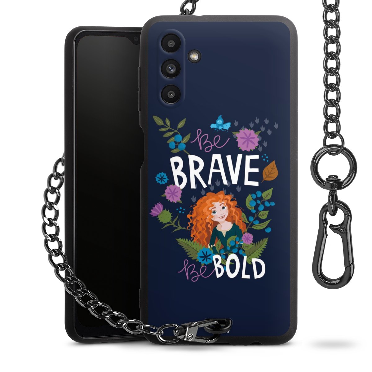 - Mattschwarze Handyhülle mit Metallkette