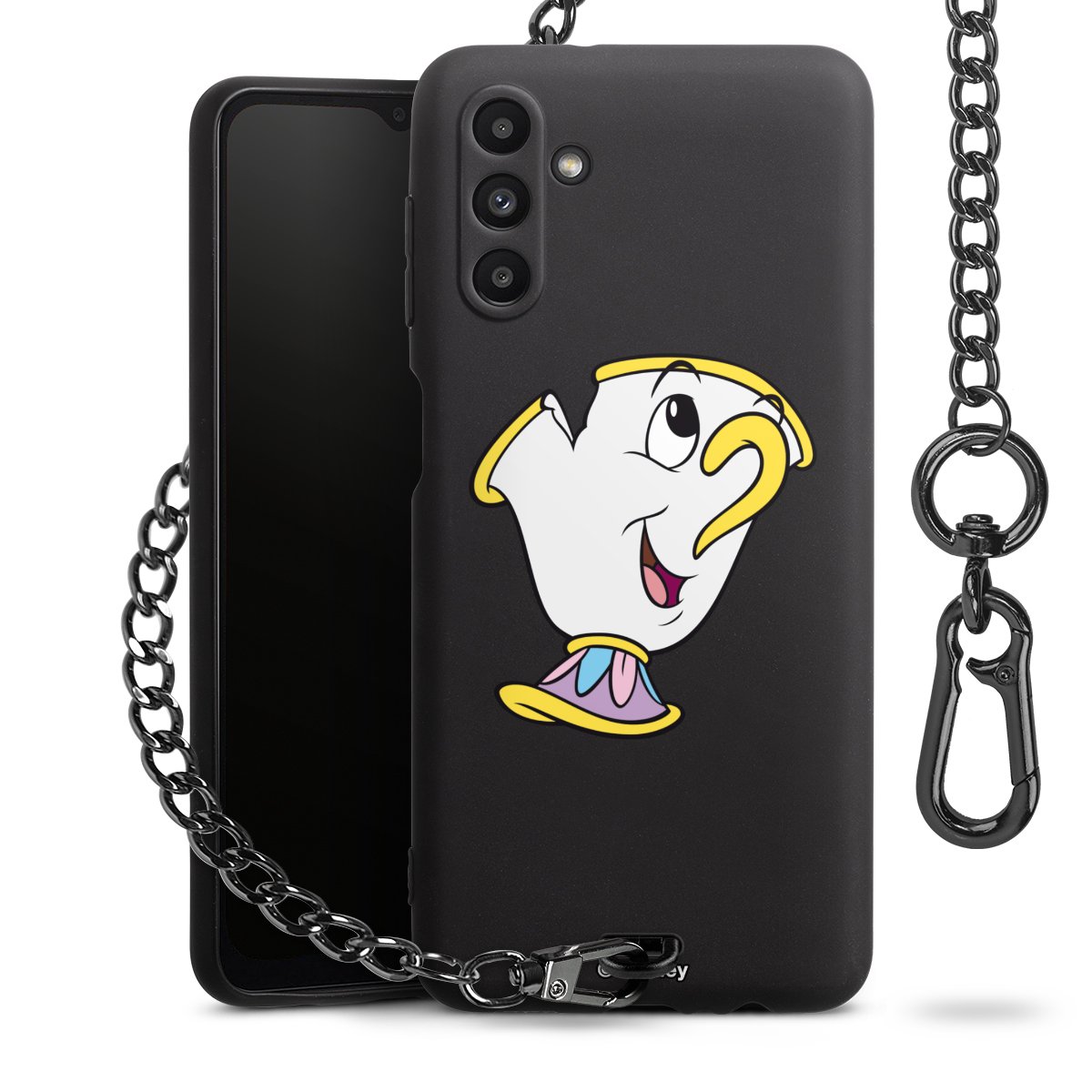 • Mattschwarze Handyhülle mit Metallkette