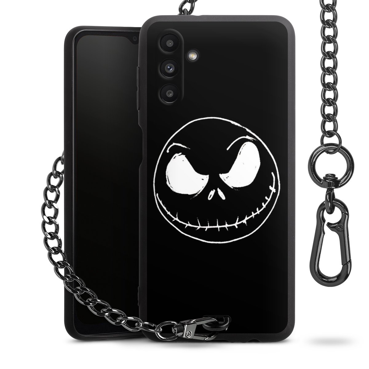 • Mattschwarze Handyhülle mit Metallkette