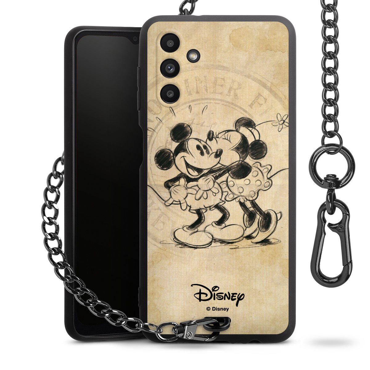 • Mattschwarze Handyhülle mit Metallkette
