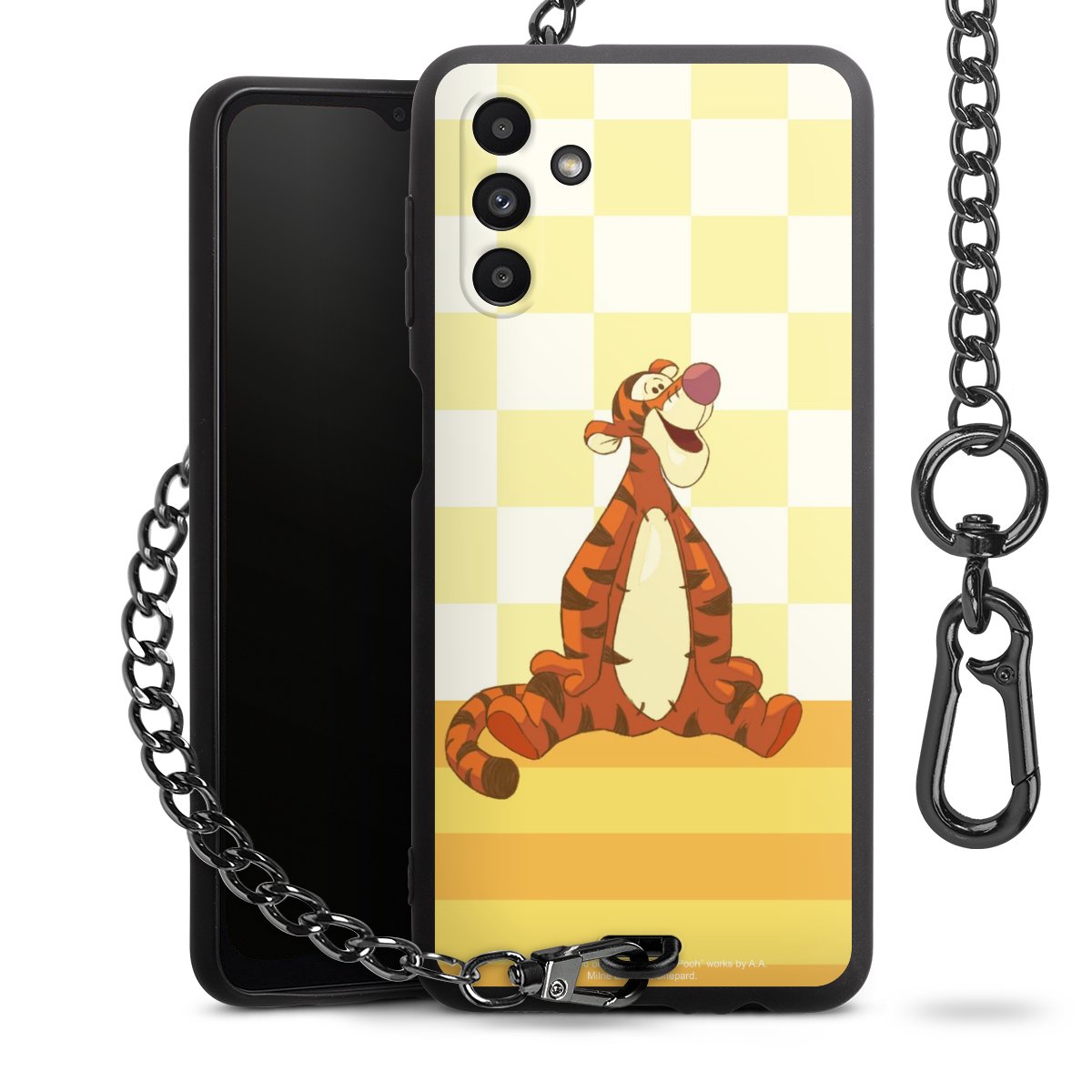 Die mattschwarze Silikon-Handyhülle besteht aus robustem TPU (thermoplastisches Polyurethan). Sie ist flexibel und schützt Dein Smartphone vor Stößen und Kratzern. Die Kette sowie der Karabinerhaken sind aus Metall in Gunmetal-Optik gefertigt. Für dieses Produkt kommen ausschließlich TÜV-geprüfte Materialien zum Einsatz.