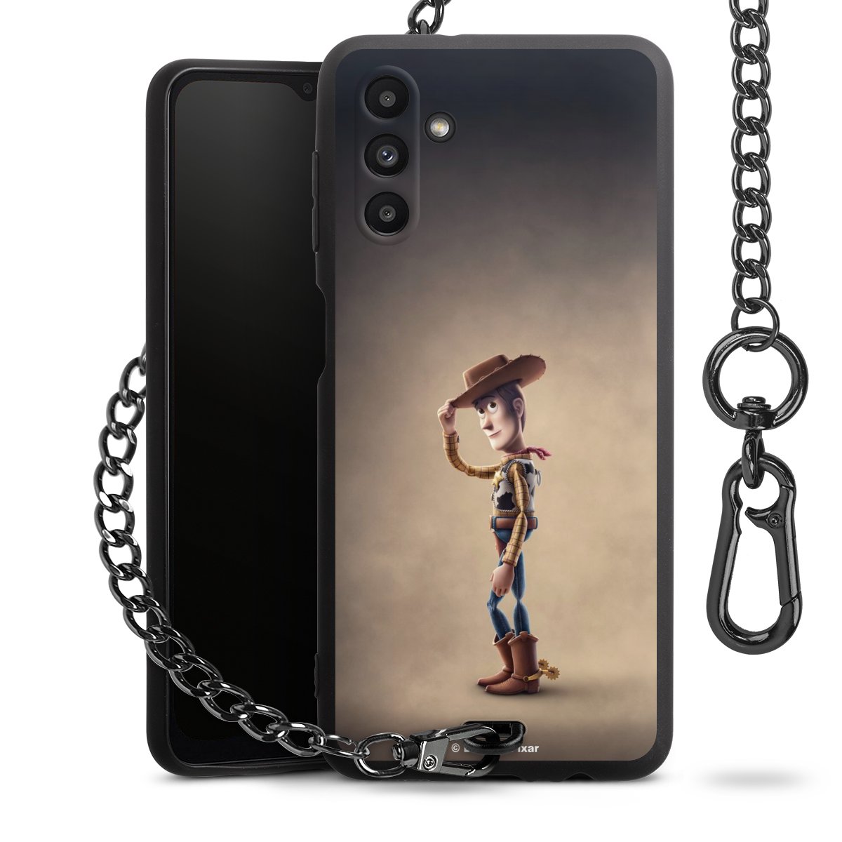 • Mattschwarze Handyhülle mit Metallkette