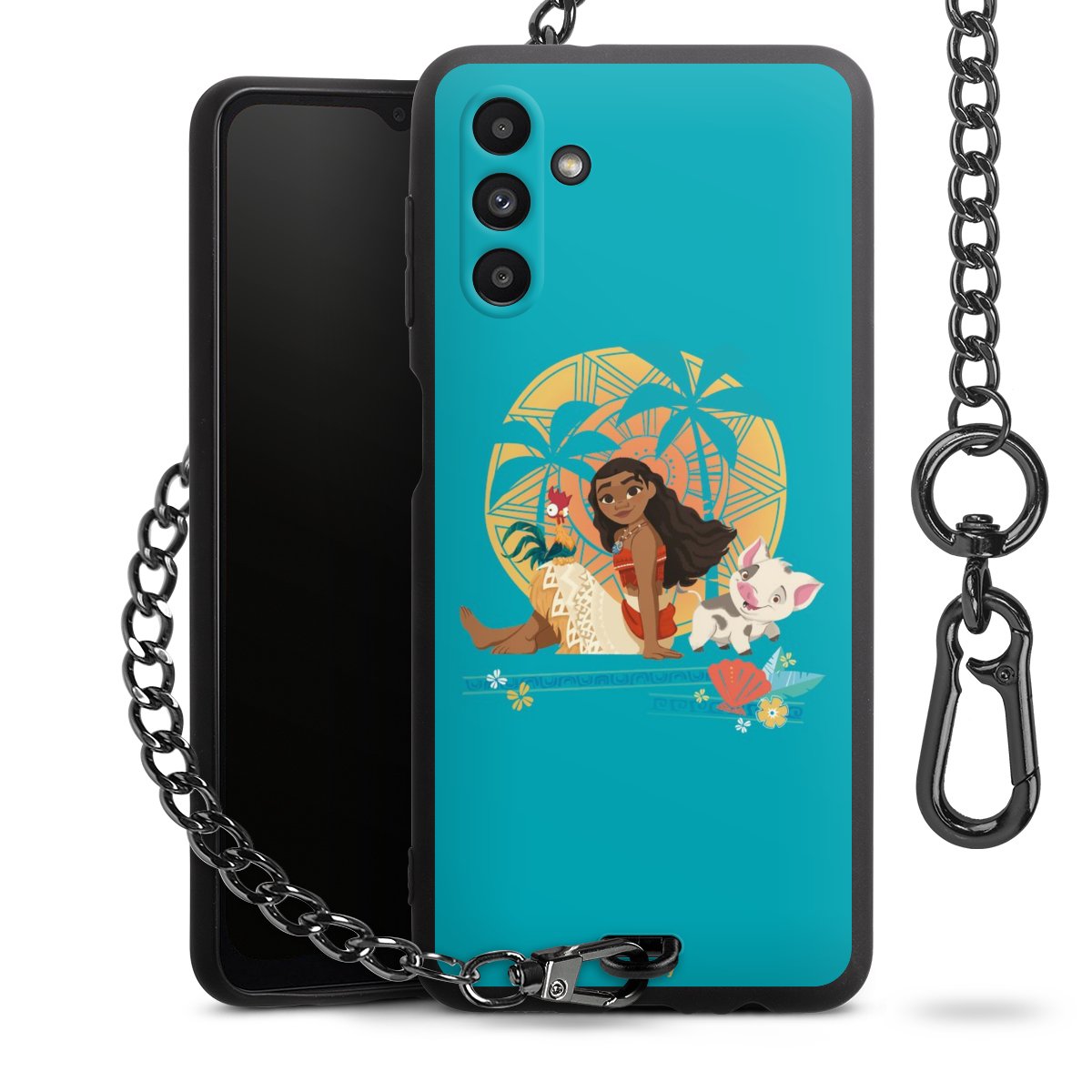 - Mattschwarze Handyhülle mit Metallkette