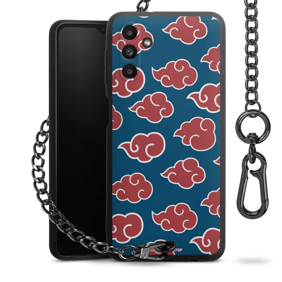 Die mattschwarze Silikon-Handyhülle besteht aus robustem TPU (thermoplastisches Polyurethan). Sie ist flexibel und schützt Dein Smartphone vor Stößen und Kratzern. Die Kette sowie der Karabinerhaken sind aus Metall in Gunmetal-Optik gefertigt. Für dieses Produkt kommen ausschließlich TÜV-geprüfte Materialien zum Einsatz.