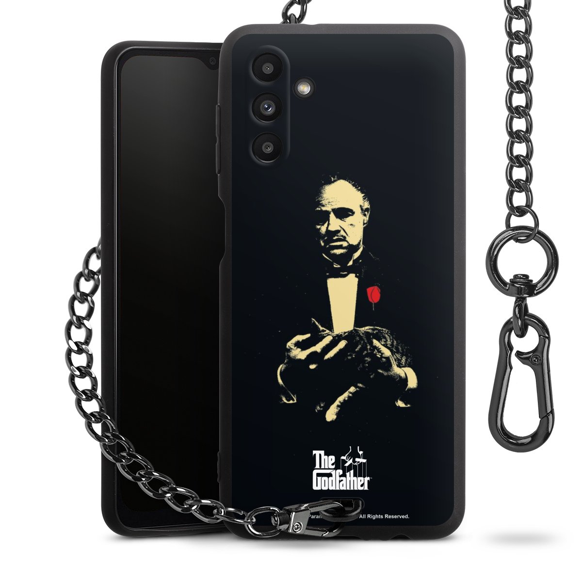 - Mattschwarze Handyhülle mit Metallkette