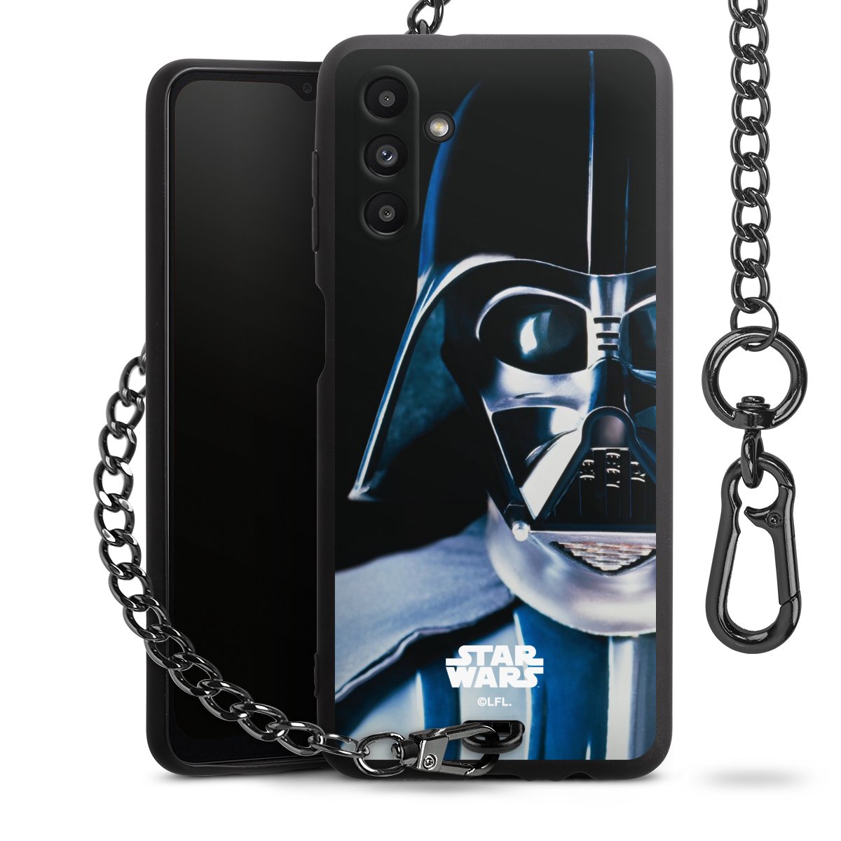 • Mattschwarze Handyhülle mit Metallkette