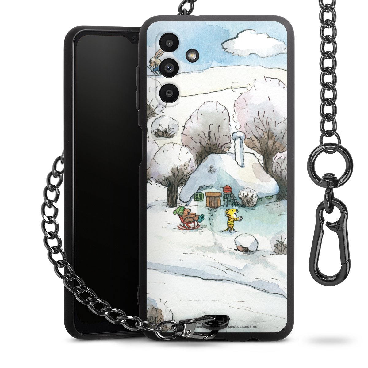Die mattschwarze Silikon-Handyhülle besteht aus robustem TPU (thermoplastisches Polyurethan). Sie ist flexibel und schützt Dein Smartphone vor Stößen und Kratzern. Die Kette sowie der Karabinerhaken sind aus Metall in Gunmetal-Optik gefertigt. Für dieses Produkt kommen ausschließlich TÜV-geprüfte Materialien zum Einsatz.