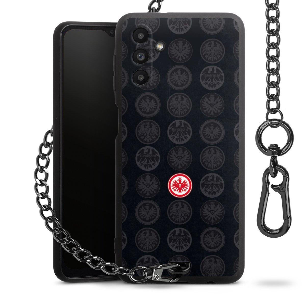 • Mattschwarze Handyhülle mit Metallkette