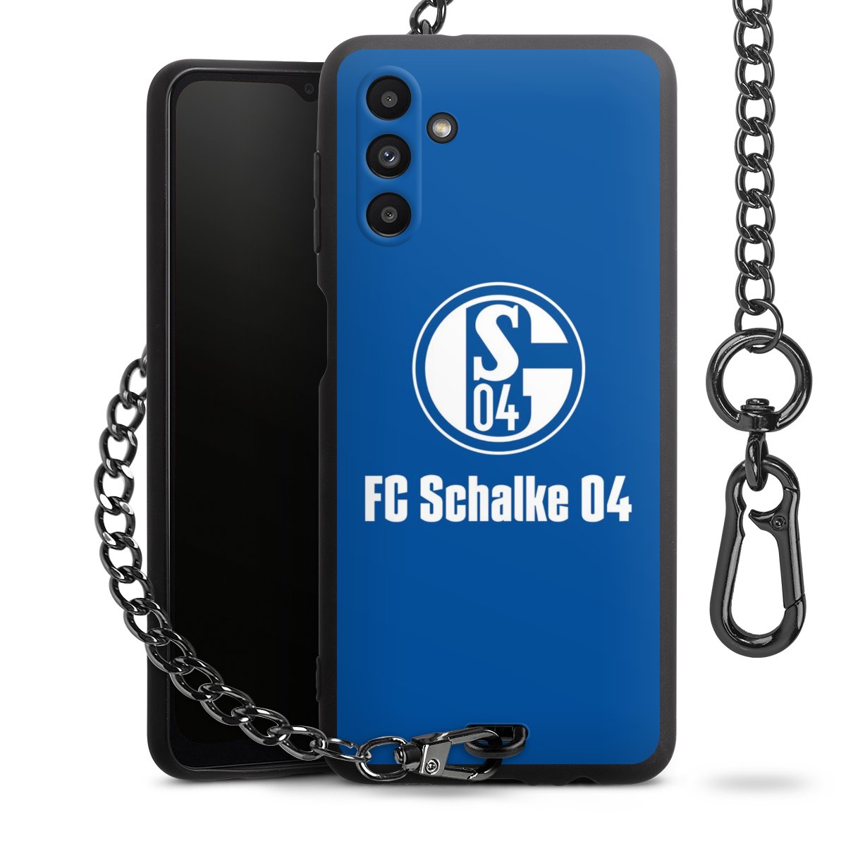 • Mattschwarze Handyhülle mit Metallkette