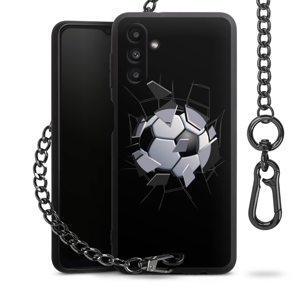 - Mattschwarze Handyhülle mit Metallkette