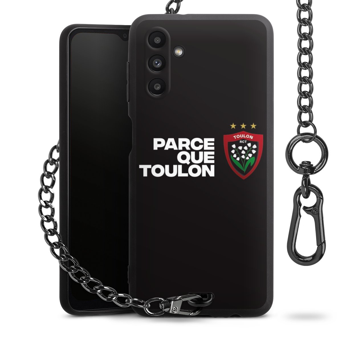 - Mattschwarze Handyhülle mit Metallkette