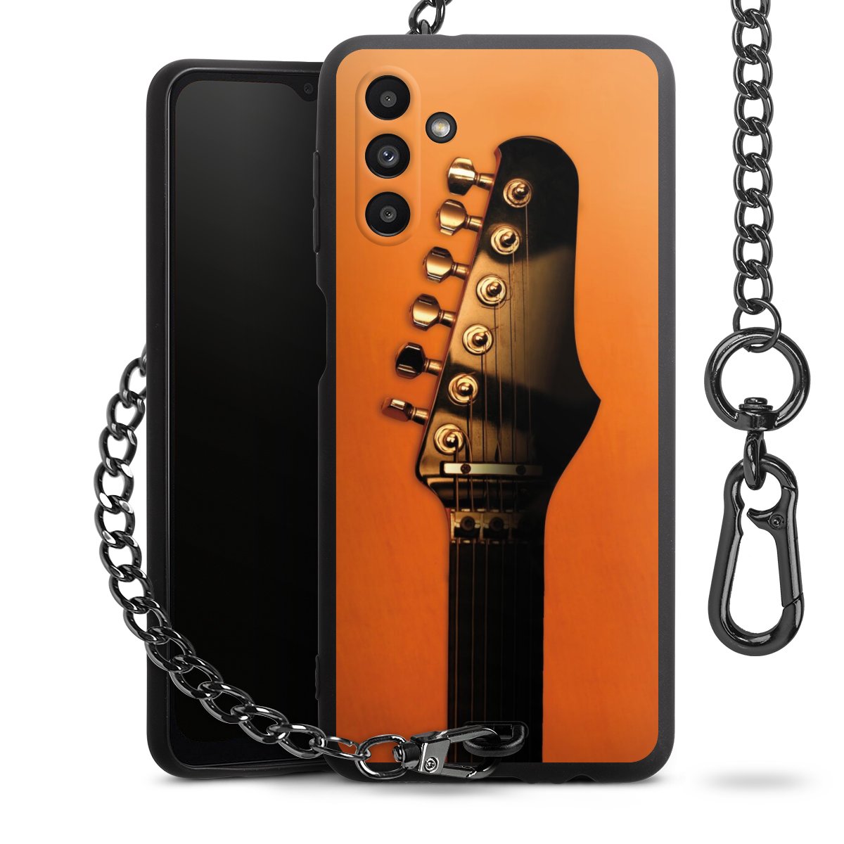 • Mattschwarze Handyhülle mit Metallkette