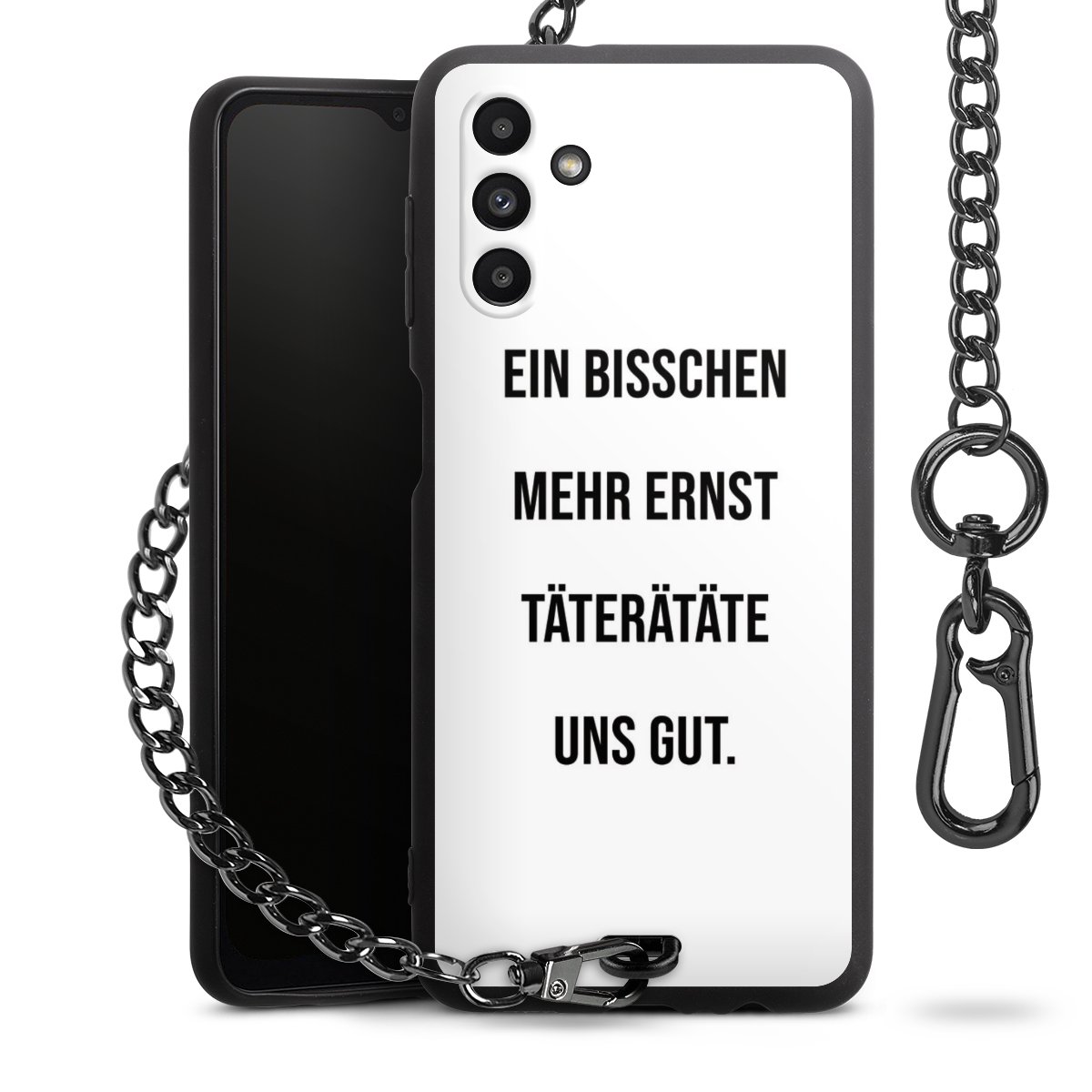 • Mattschwarze Handyhülle mit Metallkette