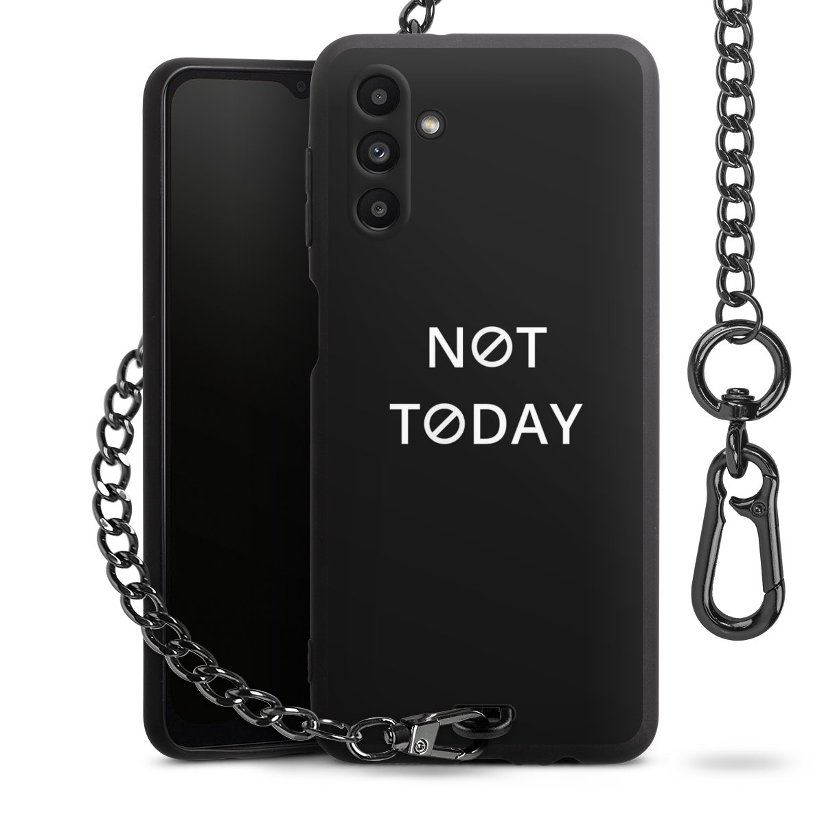 - Mattschwarze Handyhülle mit Metallkette