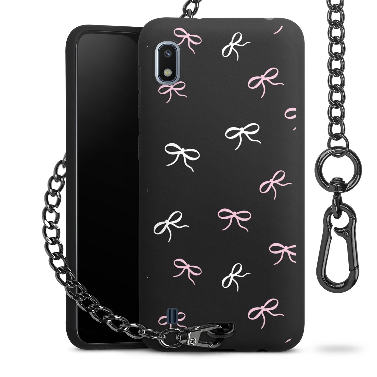 - Mattschwarze Handyhülle mit Metallkette