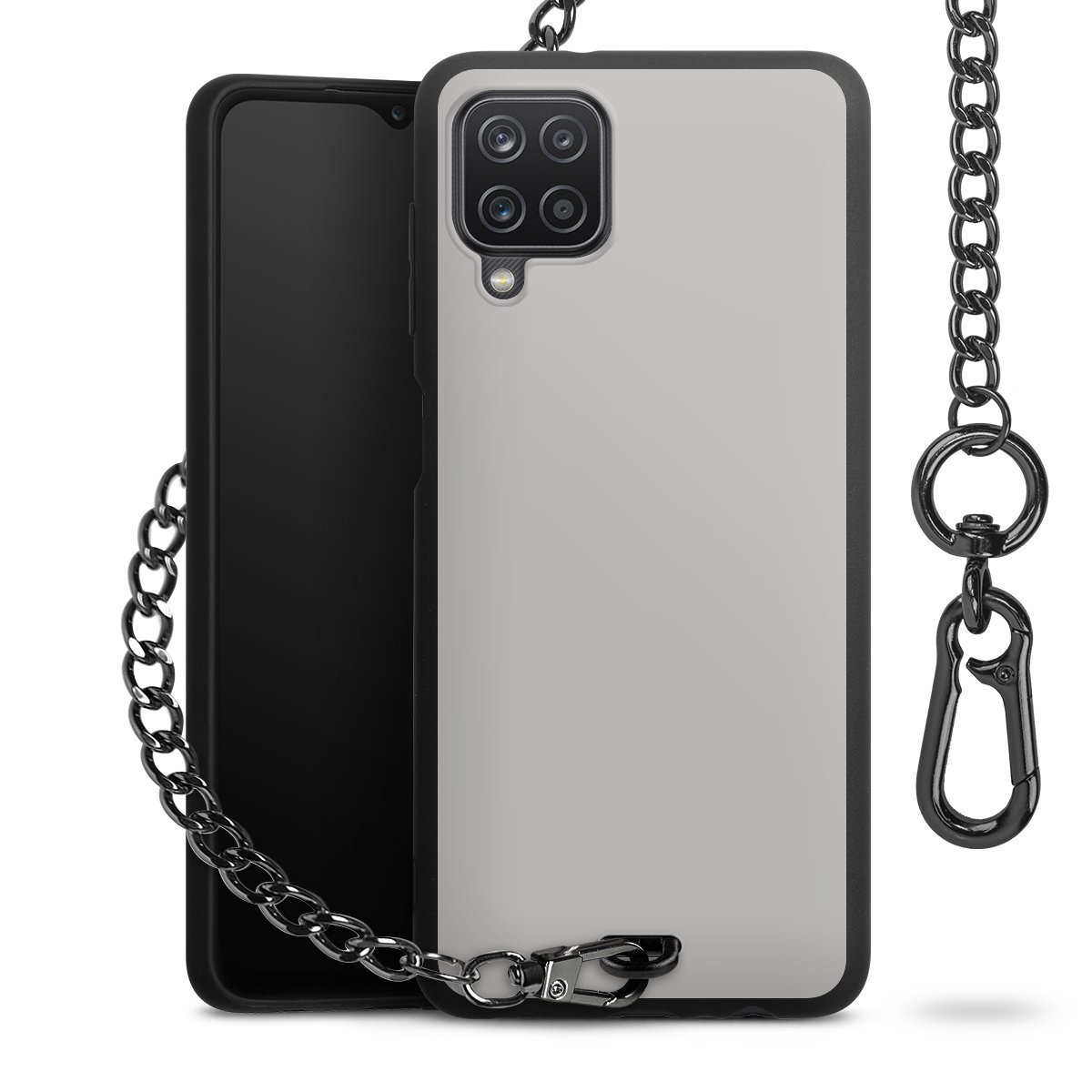 Die mattschwarze Silikon-Handyhülle besteht aus robustem TPU (thermoplastisches Polyurethan). Sie ist flexibel und schützt Dein Smartphone vor Stößen und Kratzern. Die Kette sowie der Karabinerhaken sind aus Metall in Gunmetal-Optik gefertigt. Für dieses Produkt kommen ausschließlich TÜV-geprüfte Materialien zum Einsatz.