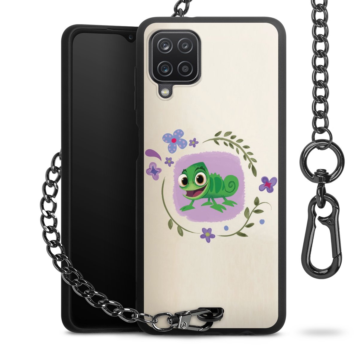 Die mattschwarze Silikon-Handyhülle besteht aus robustem TPU (thermoplastisches Polyurethan). Sie ist flexibel und schützt Dein Smartphone vor Stößen und Kratzern. Die Kette sowie der Karabinerhaken sind aus Metall in Gunmetal-Optik gefertigt. Für dieses Produkt kommen ausschließlich TÜV-geprüfte Materialien zum Einsatz.