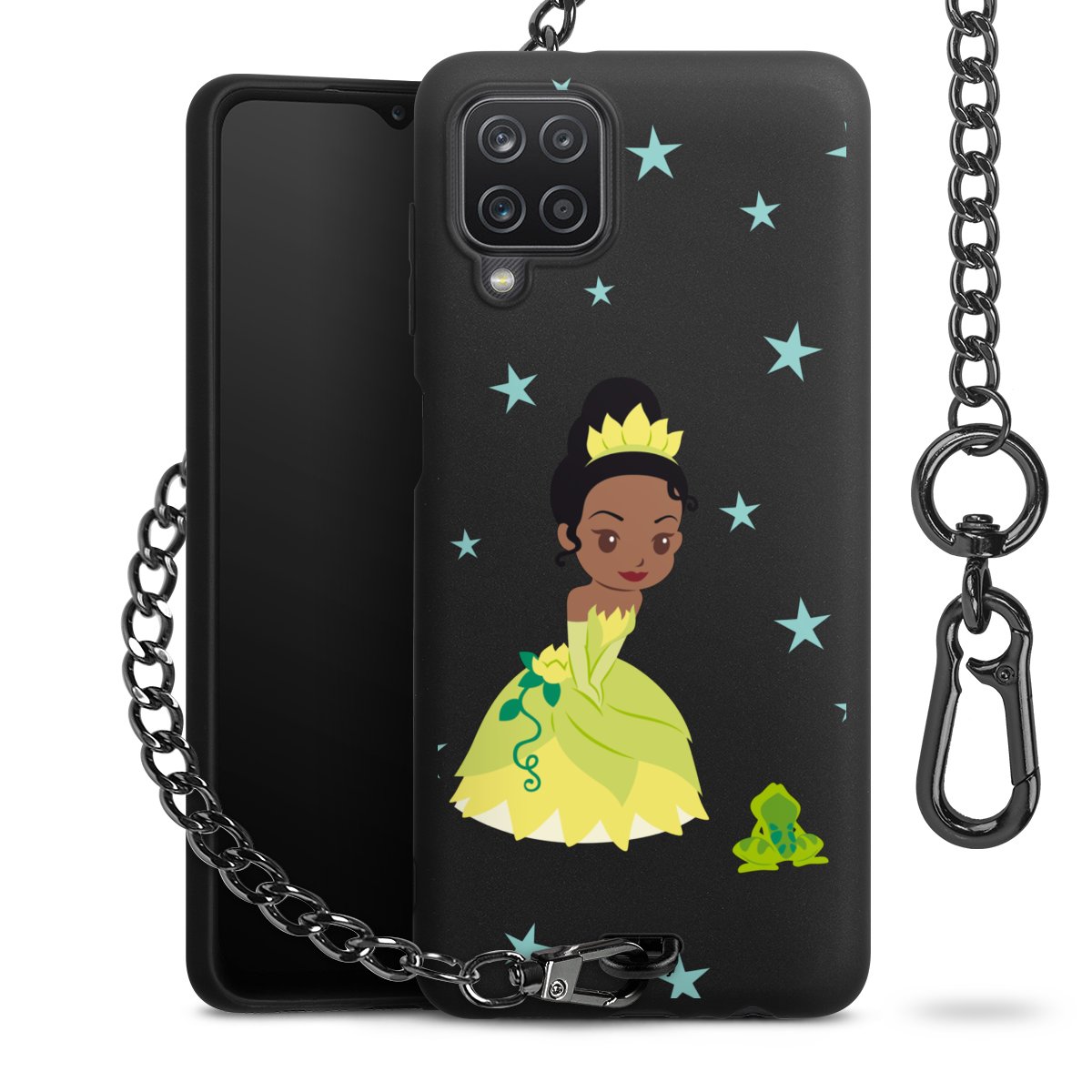 • Mattschwarze Handyhülle mit Metallkette