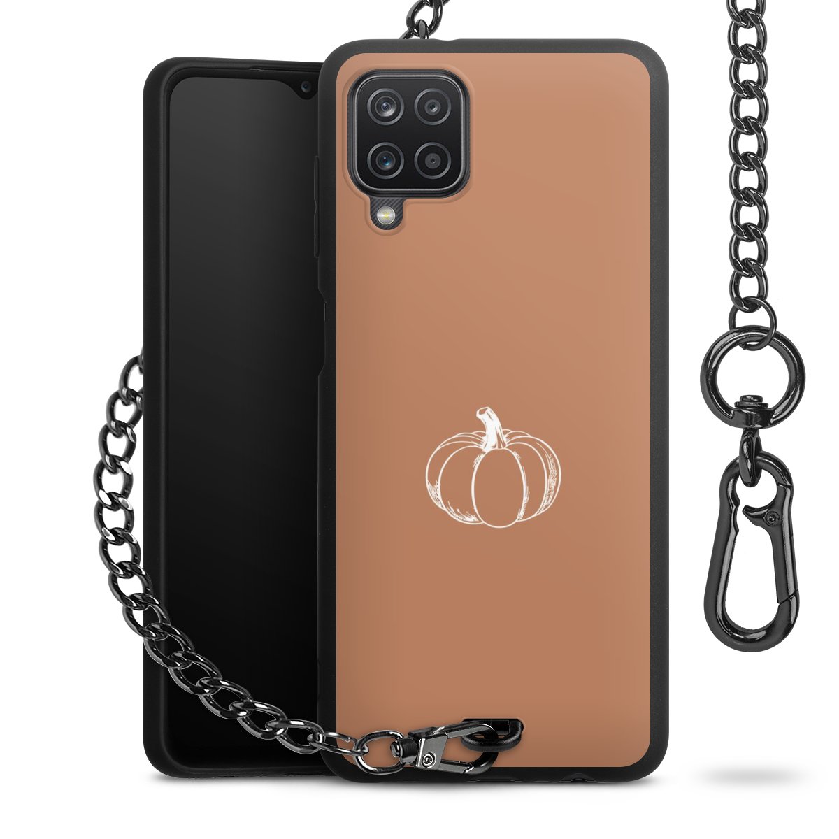 - Mattschwarze Handyhülle mit Metallkette