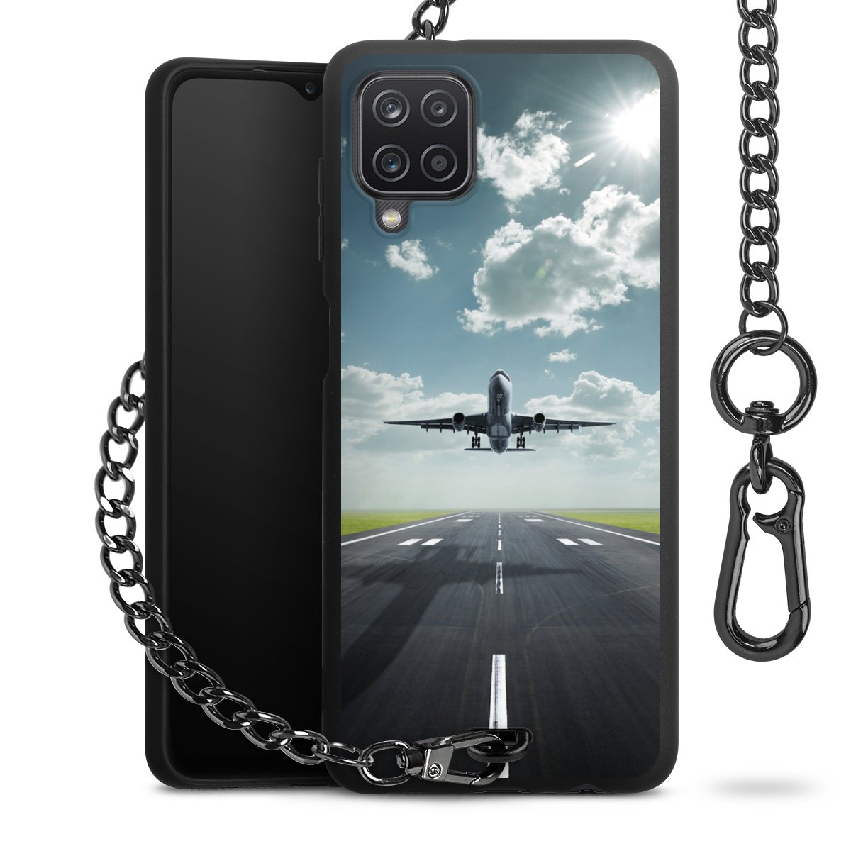 - Mattschwarze Handyhülle mit Metallkette