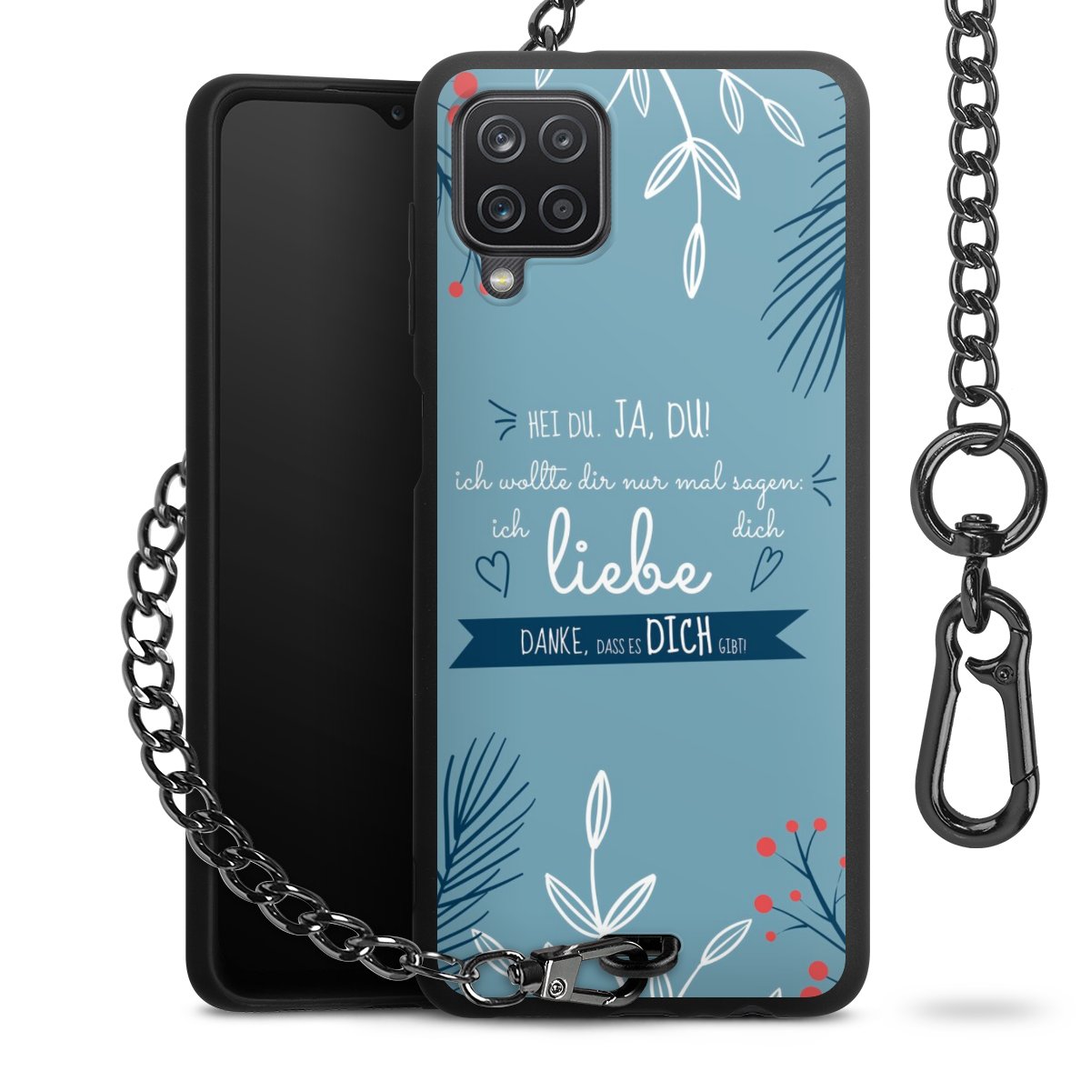 Die mattschwarze Silikon-Handyhülle besteht aus robustem TPU (thermoplastisches Polyurethan). Sie ist flexibel und schützt Dein Smartphone vor Stößen und Kratzern. Die Kette sowie der Karabinerhaken sind aus Metall in Gunmetal-Optik gefertigt. Für dieses Produkt kommen ausschließlich TÜV-geprüfte Materialien zum Einsatz.