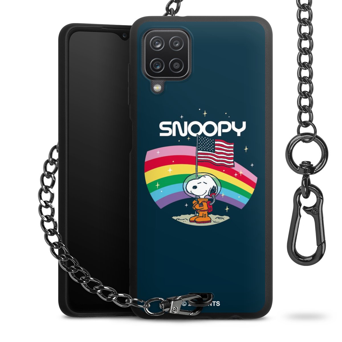Die mattschwarze Silikon-Handyhülle besteht aus robustem TPU (thermoplastisches Polyurethan). Sie ist flexibel und schützt Dein Smartphone vor Stößen und Kratzern. Die Kette sowie der Karabinerhaken sind aus Metall in Gunmetal-Optik gefertigt. Für dieses Produkt kommen ausschließlich TÜV-geprüfte Materialien zum Einsatz.