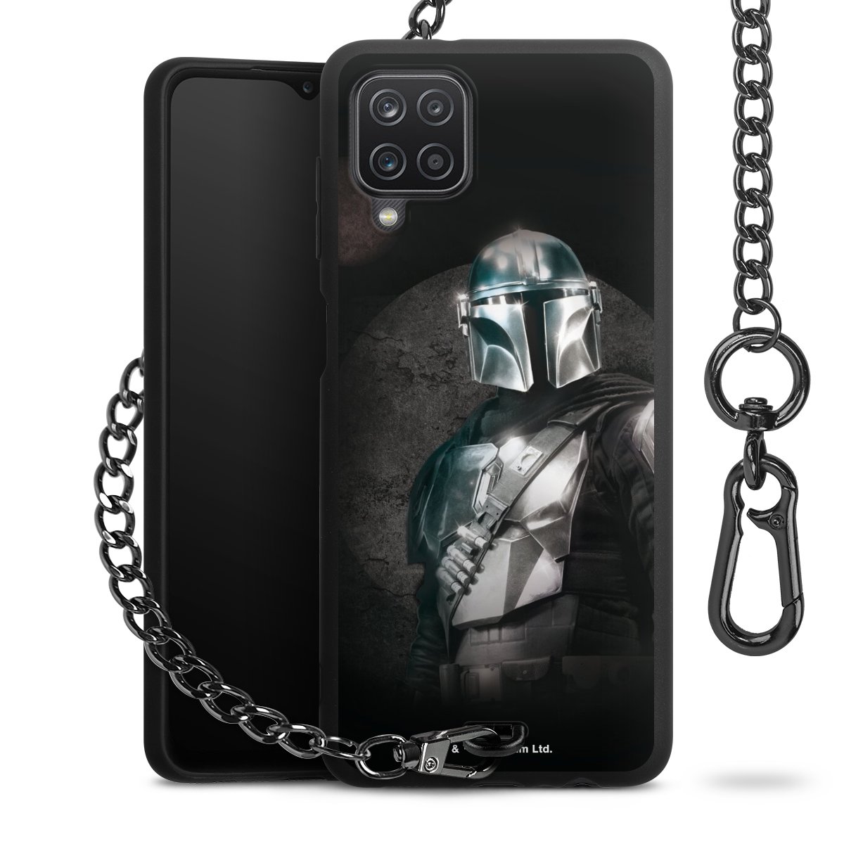 Die mattschwarze Silikon-Handyhülle besteht aus robustem TPU (thermoplastisches Polyurethan). Sie ist flexibel und schützt Dein Smartphone vor Stößen und Kratzern. Die Kette sowie der Karabinerhaken sind aus Metall in Gunmetal-Optik gefertigt. Für dieses Produkt kommen ausschließlich TÜV-geprüfte Materialien zum Einsatz.