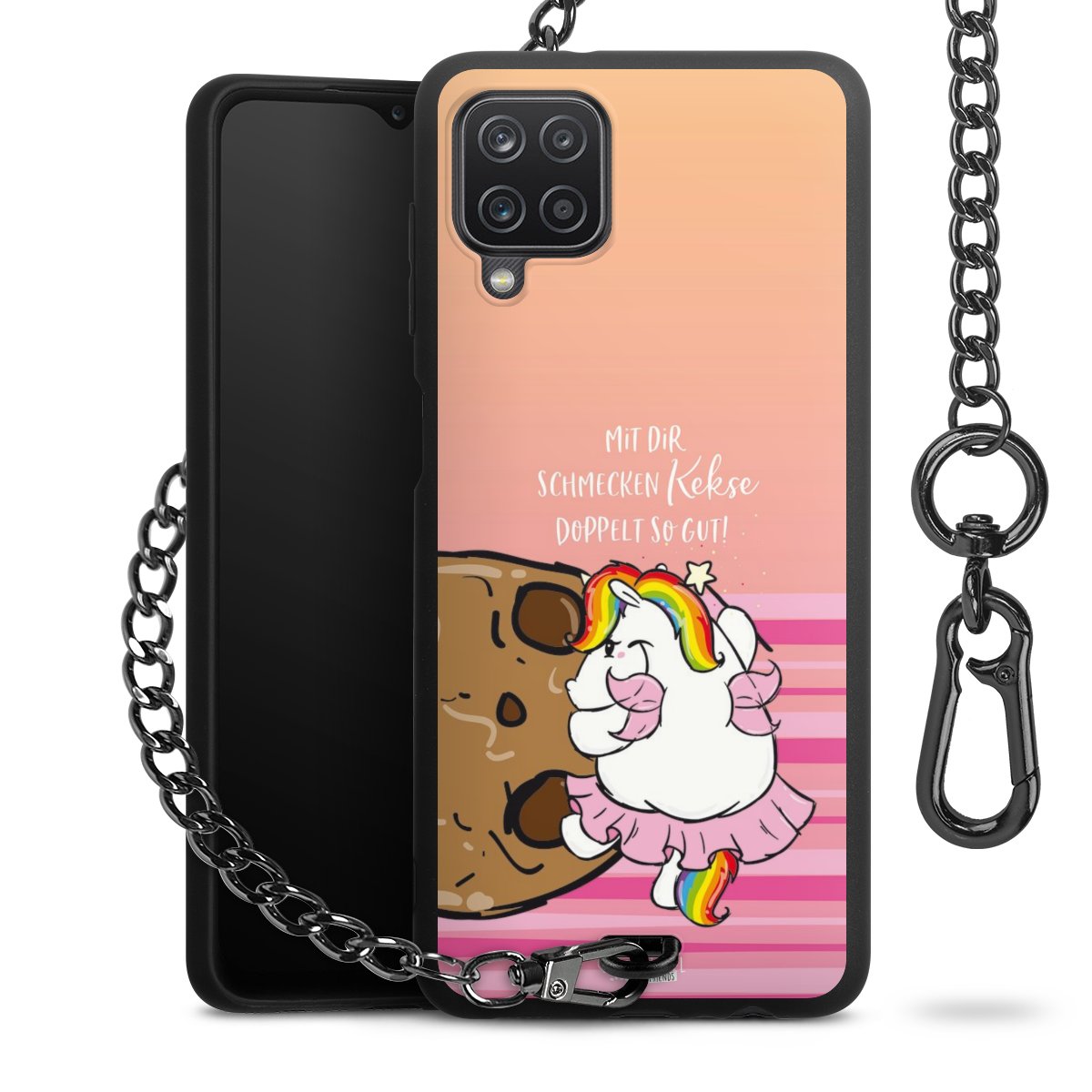 Die mattschwarze Silikon-Handyhülle besteht aus robustem TPU (thermoplastisches Polyurethan). Sie ist flexibel und schützt Dein Smartphone vor Stößen und Kratzern. Die Kette sowie der Karabinerhaken sind aus Metall in Gunmetal-Optik gefertigt. Für dieses Produkt kommen ausschließlich TÜV-geprüfte Materialien zum Einsatz.