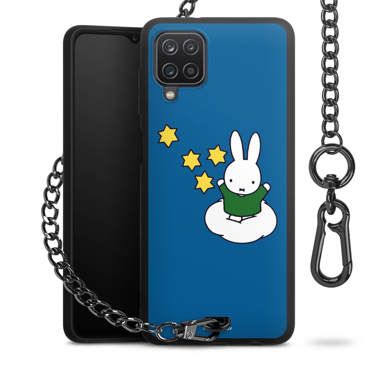 Die Handyhülle verfügt über eine mittig am unteren Rand platzierte Öse, an der die Metallkette stabil befestigt ist. Bestelle die Hülle einfach für Dein Smartphone-Modell, dann passt sie wie angegossen und Du brauchst sie bloß einmal anzudrücken. Handy in die Tasche, Karabiner an den Hosenbund – schon kann die Party starten.