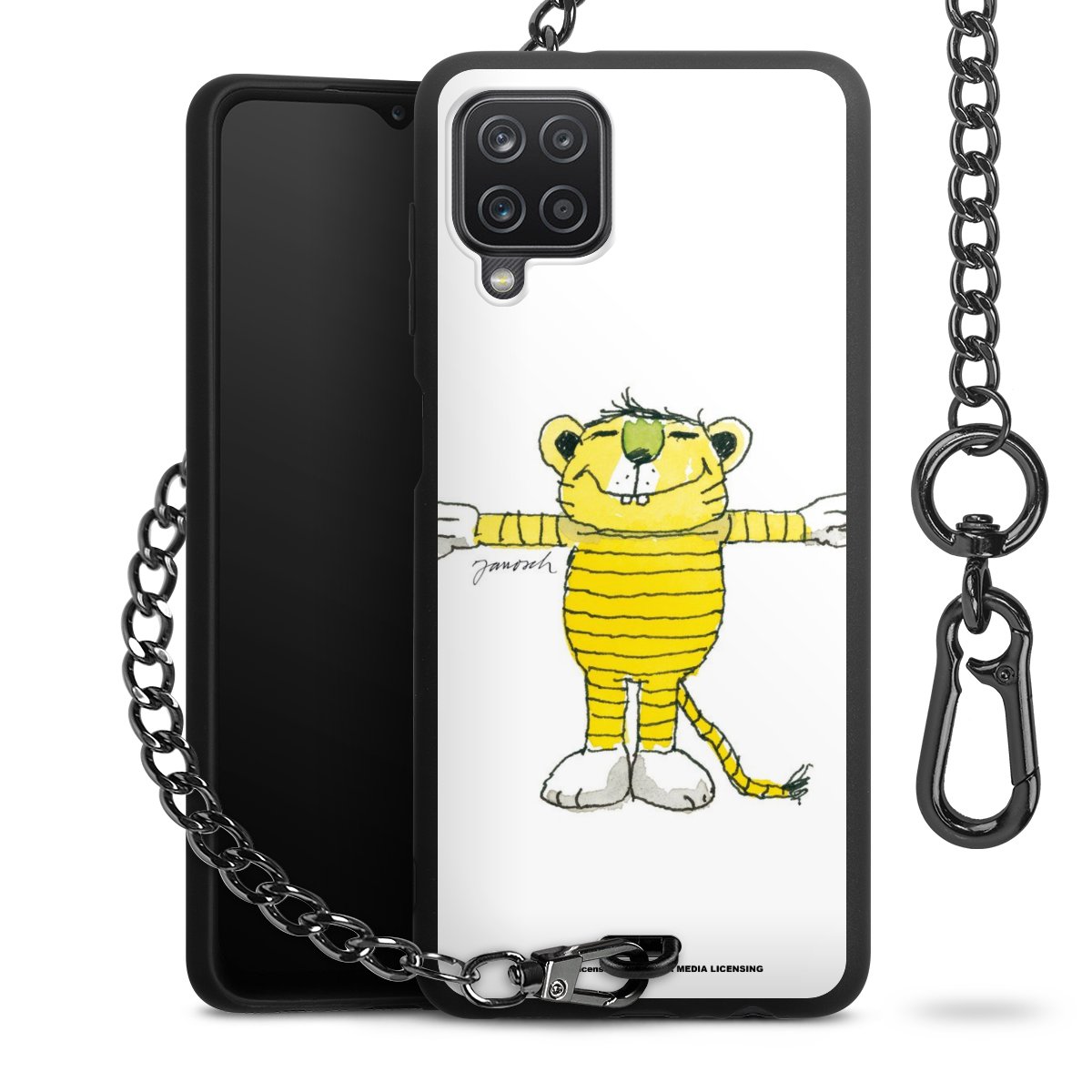 Die mattschwarze Silikon-Handyhülle besteht aus robustem TPU (thermoplastisches Polyurethan). Sie ist flexibel und schützt Dein Smartphone vor Stößen und Kratzern. Die Kette sowie der Karabinerhaken sind aus Metall in Gunmetal-Optik gefertigt. Für dieses Produkt kommen ausschließlich TÜV-geprüfte Materialien zum Einsatz.